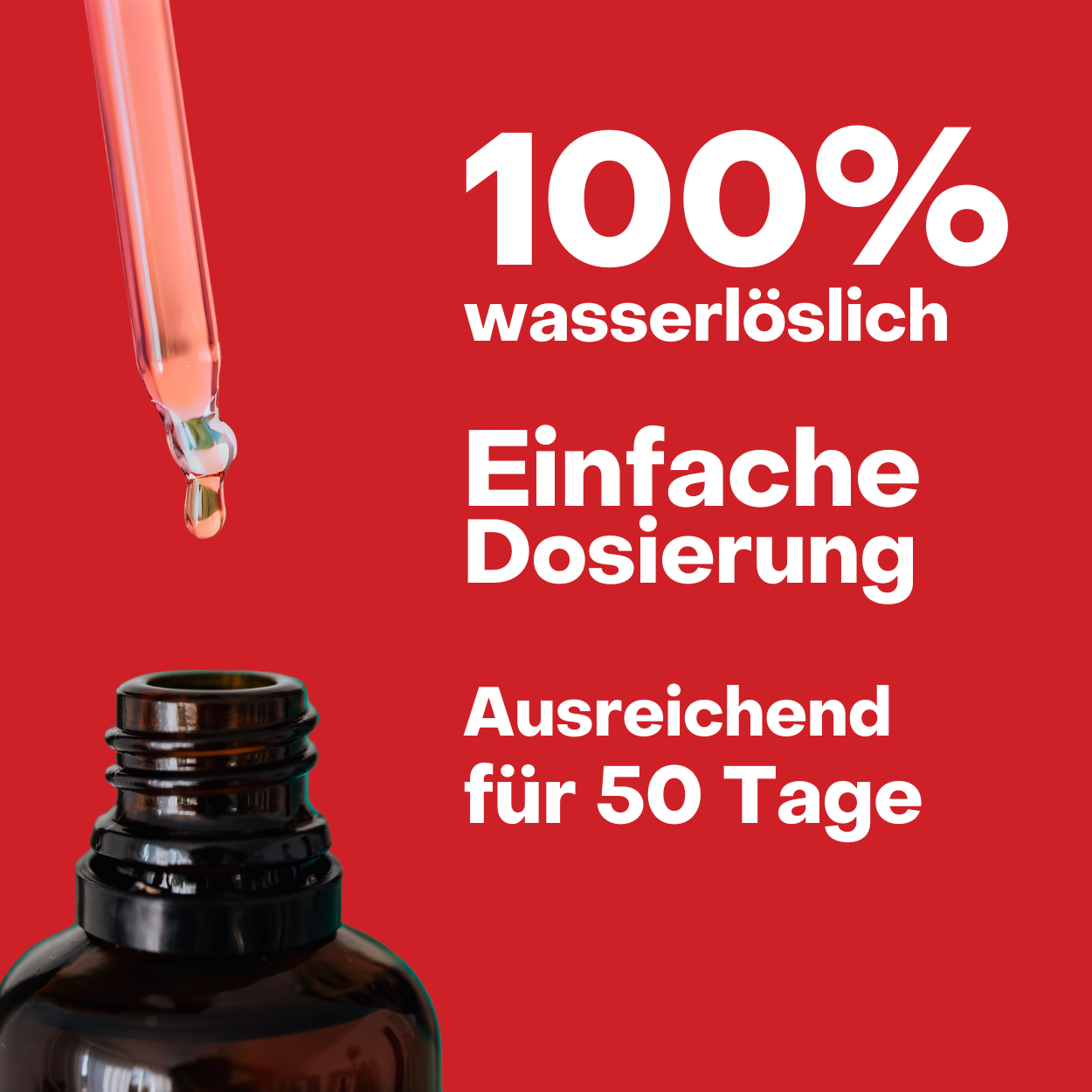 Das speziell hochdosierte Vitamin B12 unterstützt zudem die Bildung roter Blutkörperchen – wichtig für einen optimalen Sauerstofftransport in deinem Körper.